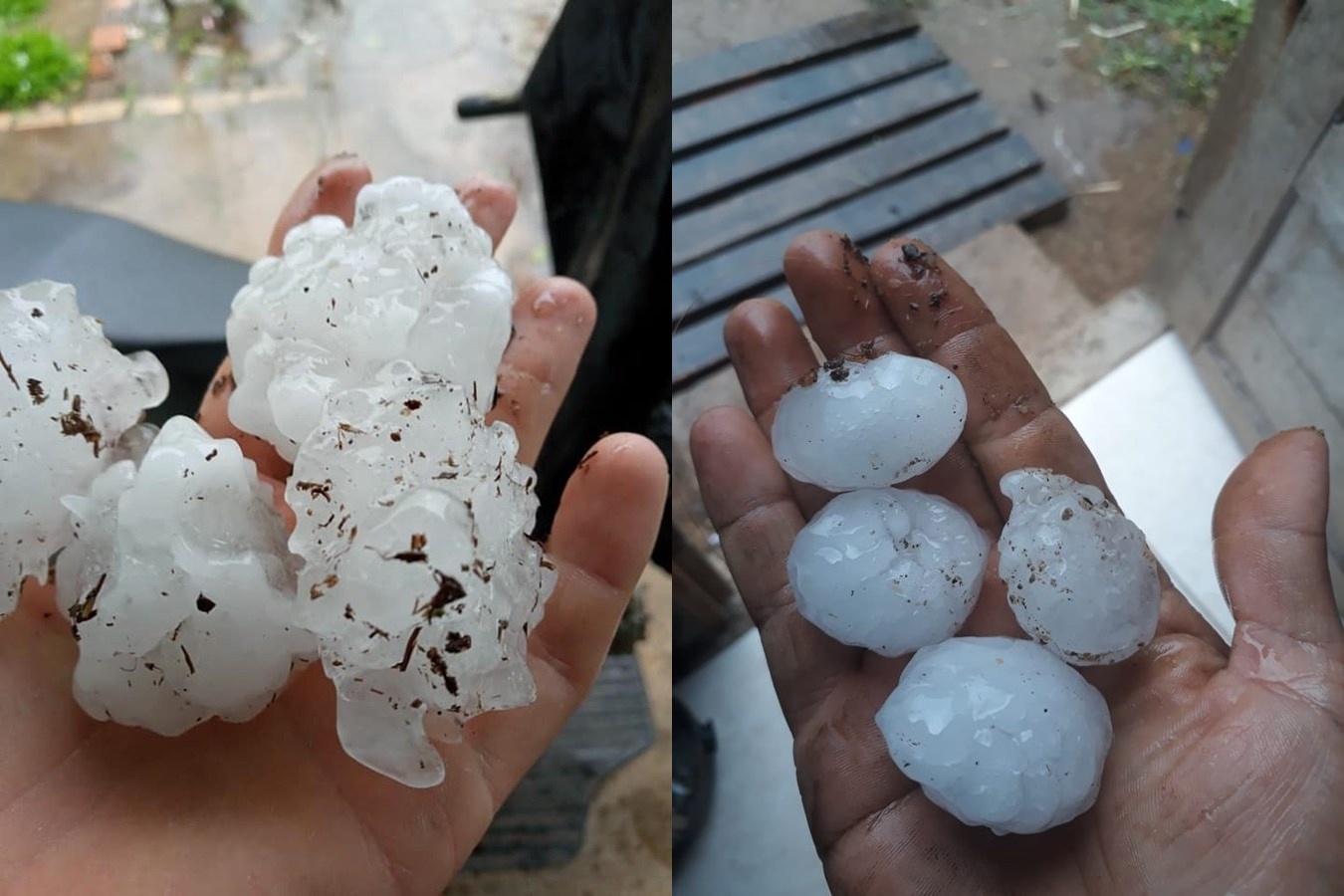Não apenas as pedras foram grandes em algumas áreas como o granizo caiu em grande quantidade em pontos destes municípios, o que fez com que o gelo se acumulasse no solo. Foi o caso do município de Sertão Santana.