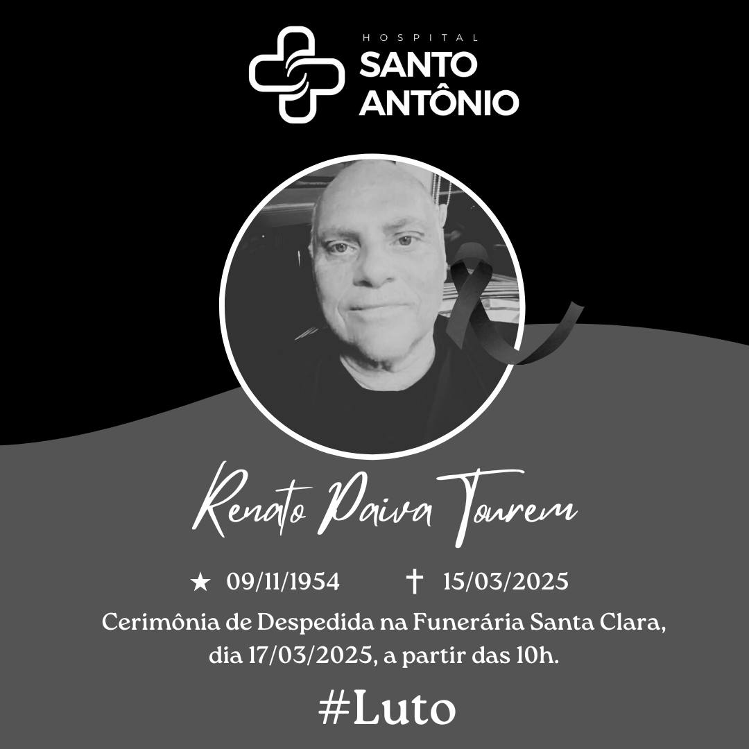 Com pesar, a Direção e funcionários do Hospital Santo Antônio (HSA), em São Francisco de Assis, comunicam o falecimento do ex-presidente da instituição, Renato Paiva Tourem.